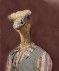 Here’s a picture of an ostrich wearing people clothes for no reason at all.